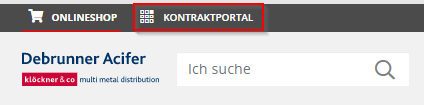Sind Sie in unserem Onlineshop eingeloggt, können Sie oben links zwischen dem Onlineshop und dem Kontraktportal wechseln.